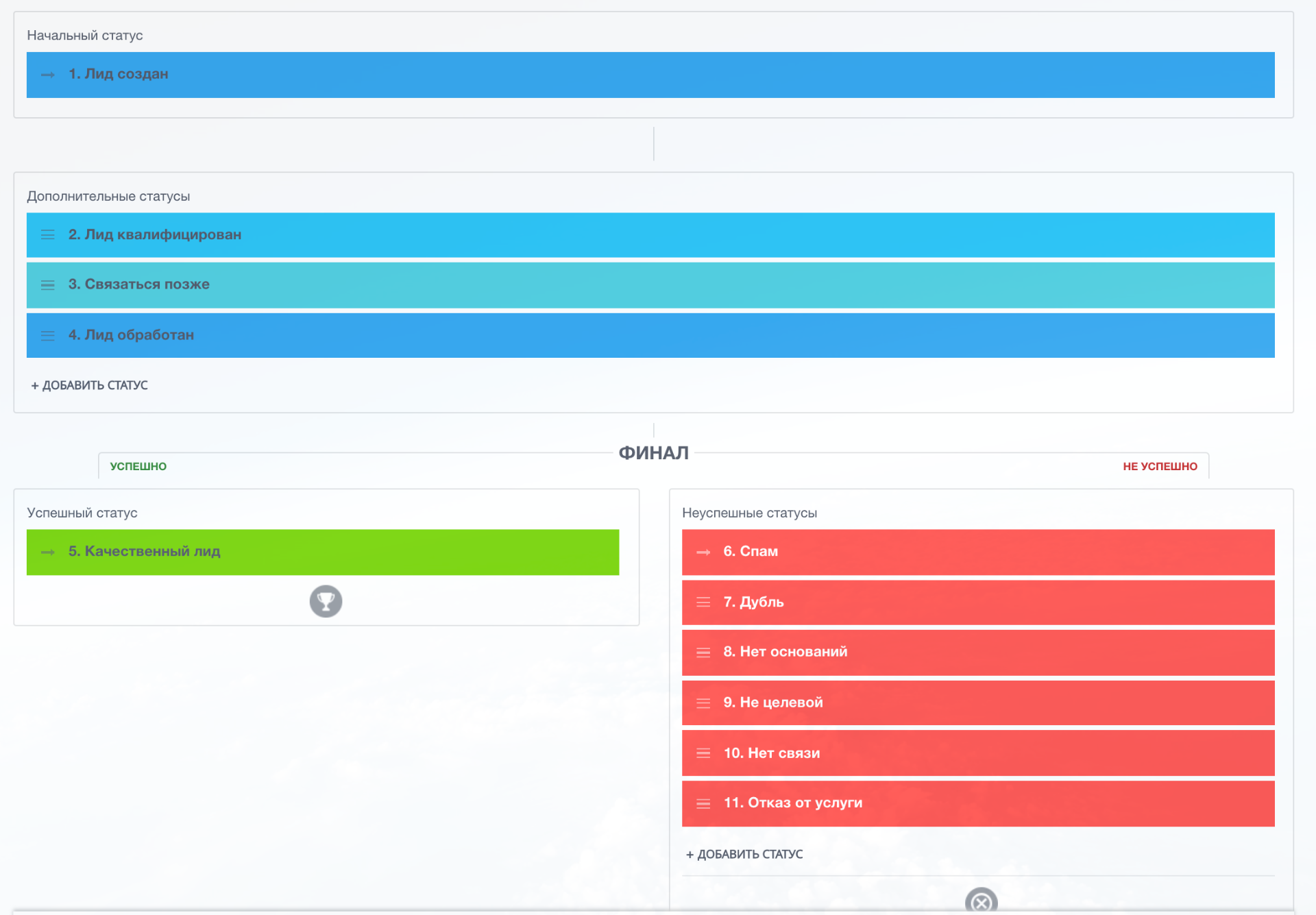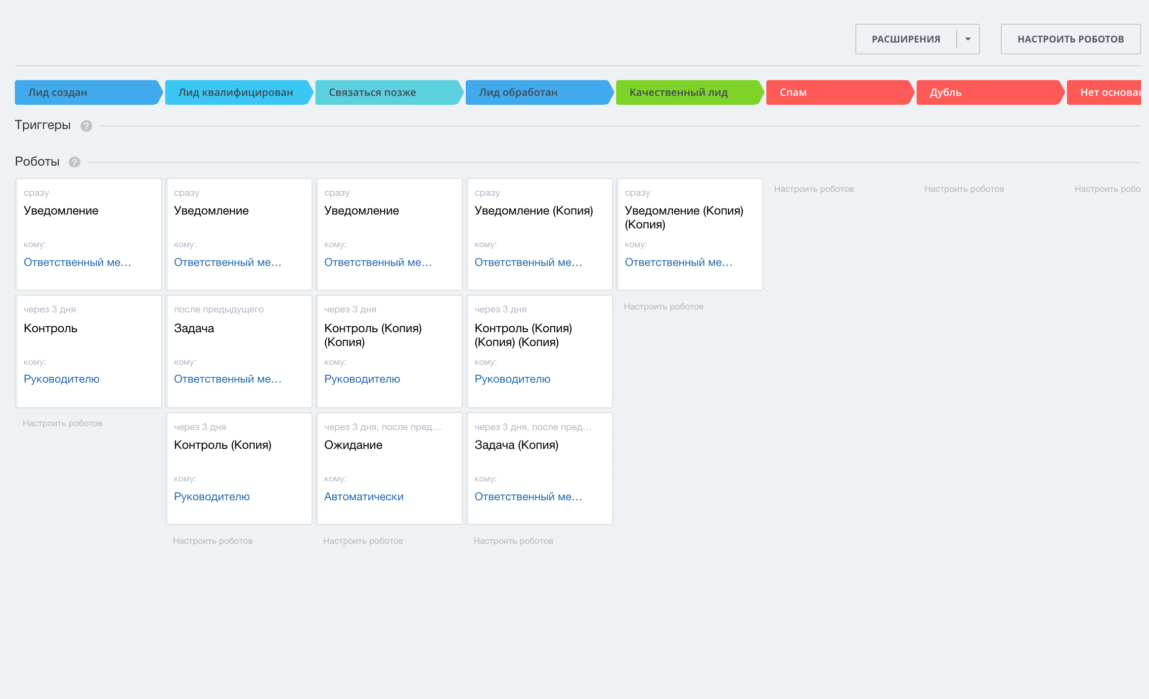 2) воронка CRM c неограниченным количеством направлений сделок;